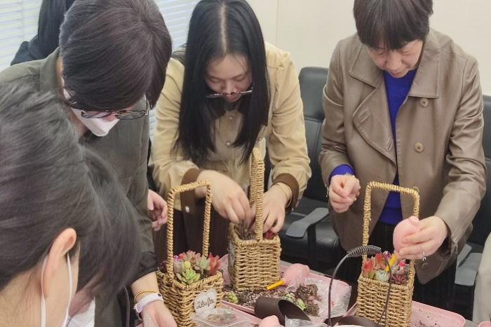 為順利舉辦此次活動(dòng),人力行政部定制了活動(dòng)橫幅并邀請(qǐng)了專(zhuān)業(yè)的多肉種植老師為大家講解示范。3月8日當(dāng)天下午,人力行政部精心布置好會(huì)場(chǎng)與多肉種植老師一起等待全體女同胞們進(jìn)入會(huì)場(chǎng)。